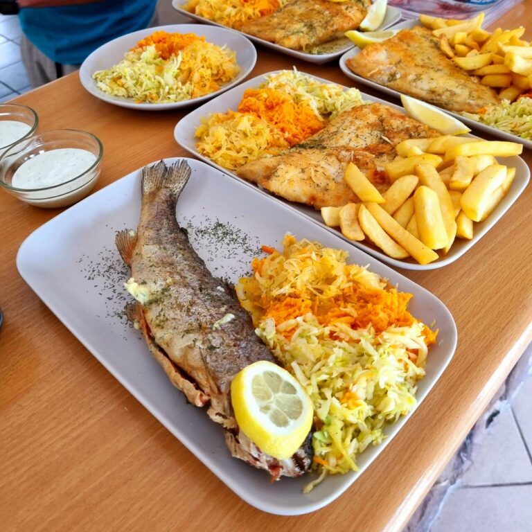 Smażalnia działa sezonowo – od maja do końca września, dlatego warto odwiedzić nas w czasie letnich dni, kiedy zapach smażonej ryby łączy się z atmosferą wypoczynku nad wodą.